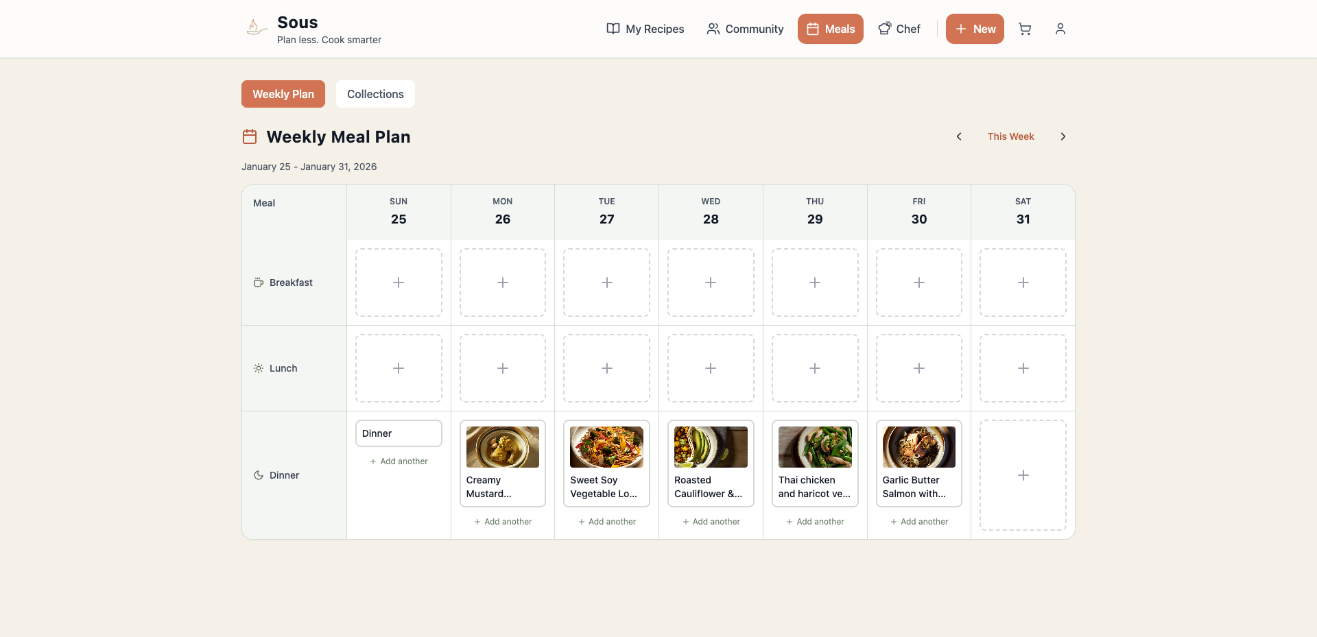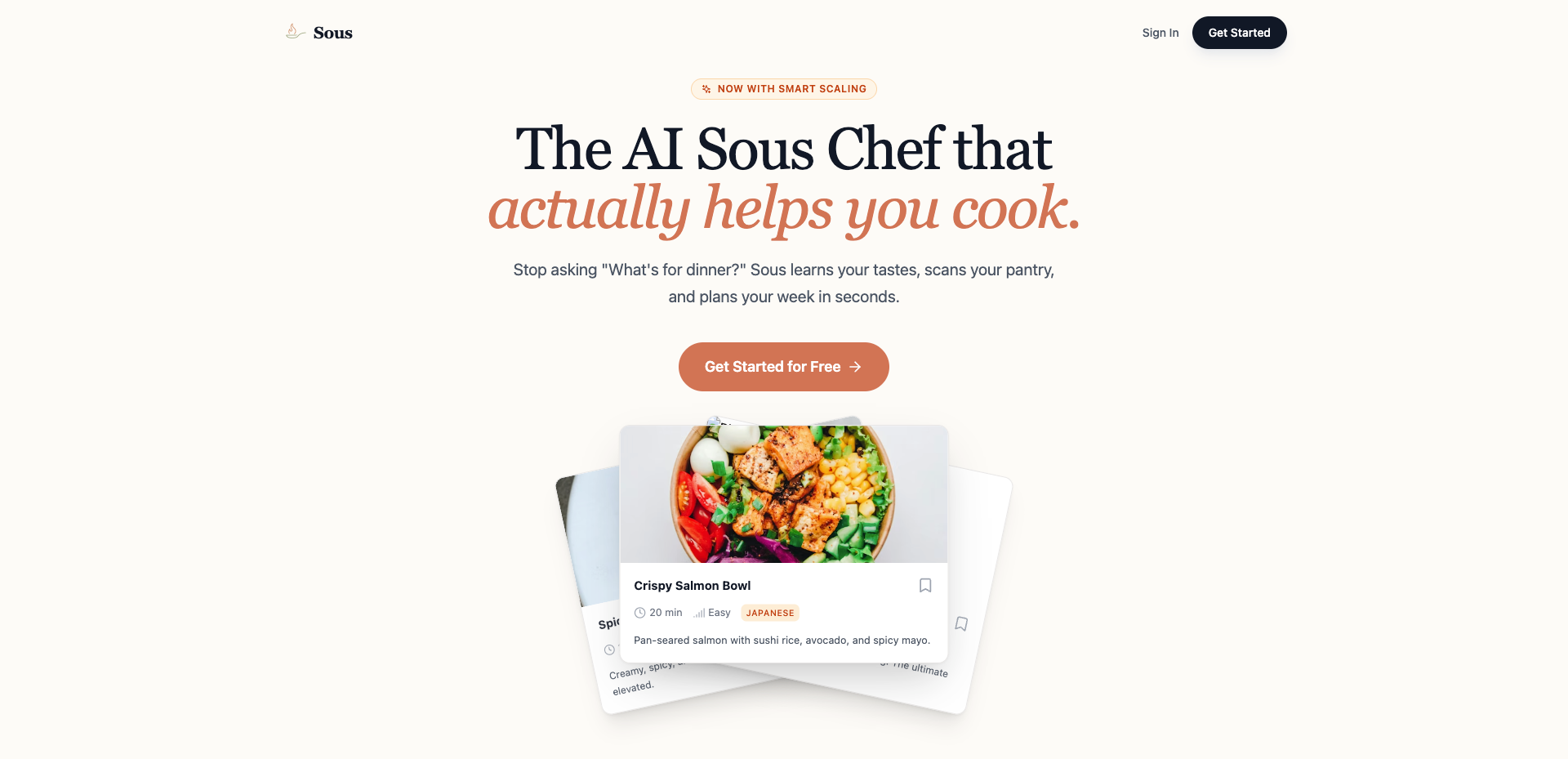 Having a full and busy life shouldn’t mean not having great choices to eat for you and your family. Sous cuts through the noise to help you get inspiration for new dishes, make better use of what you already have, and navigate a life of picky eaters, allergies, and time constraints. Whether you’re looking to just organize the things you have in a better place from Instagram, TikTok, and your favorite websites to needing some recipes ideas for the things you have in your fridge, Sous can help you plan your week around the time you have with flavorful, balanced, and easy to make dishes.